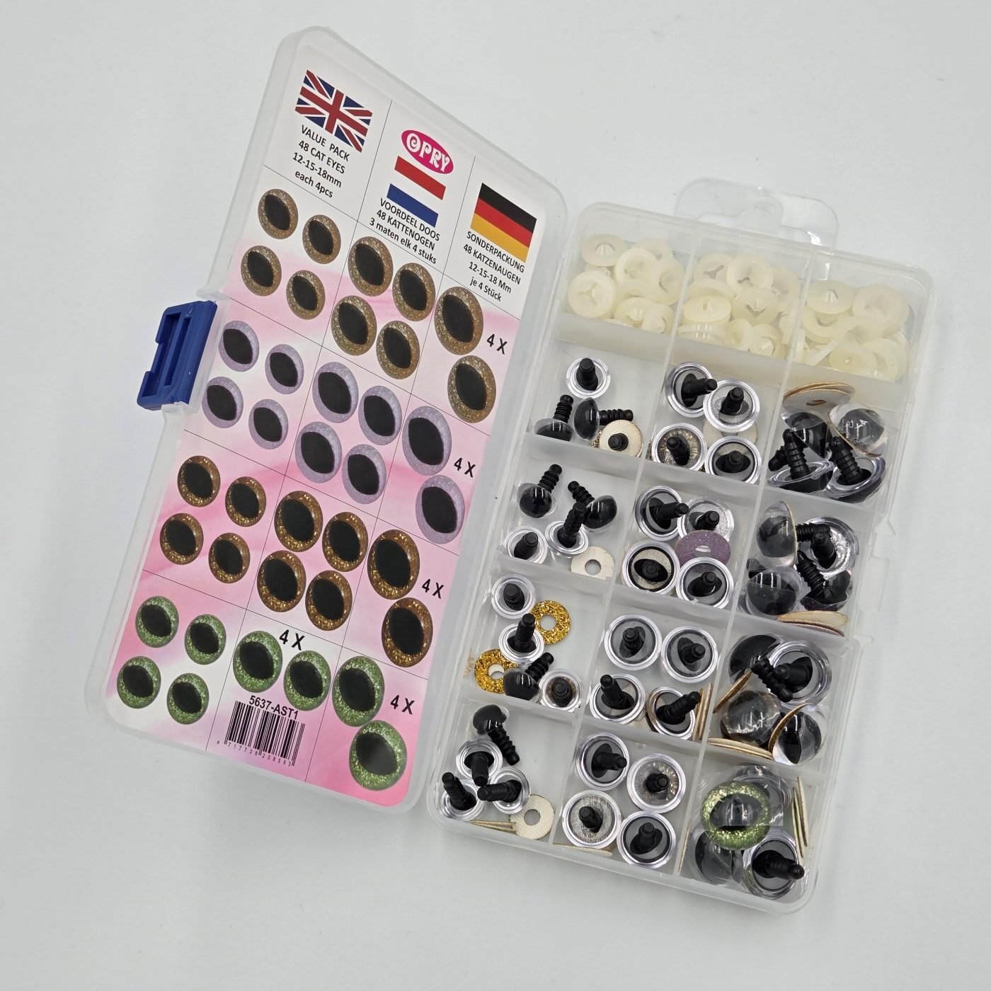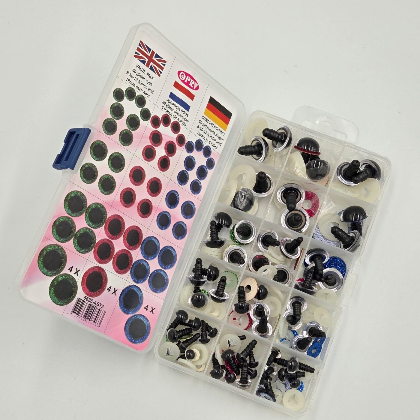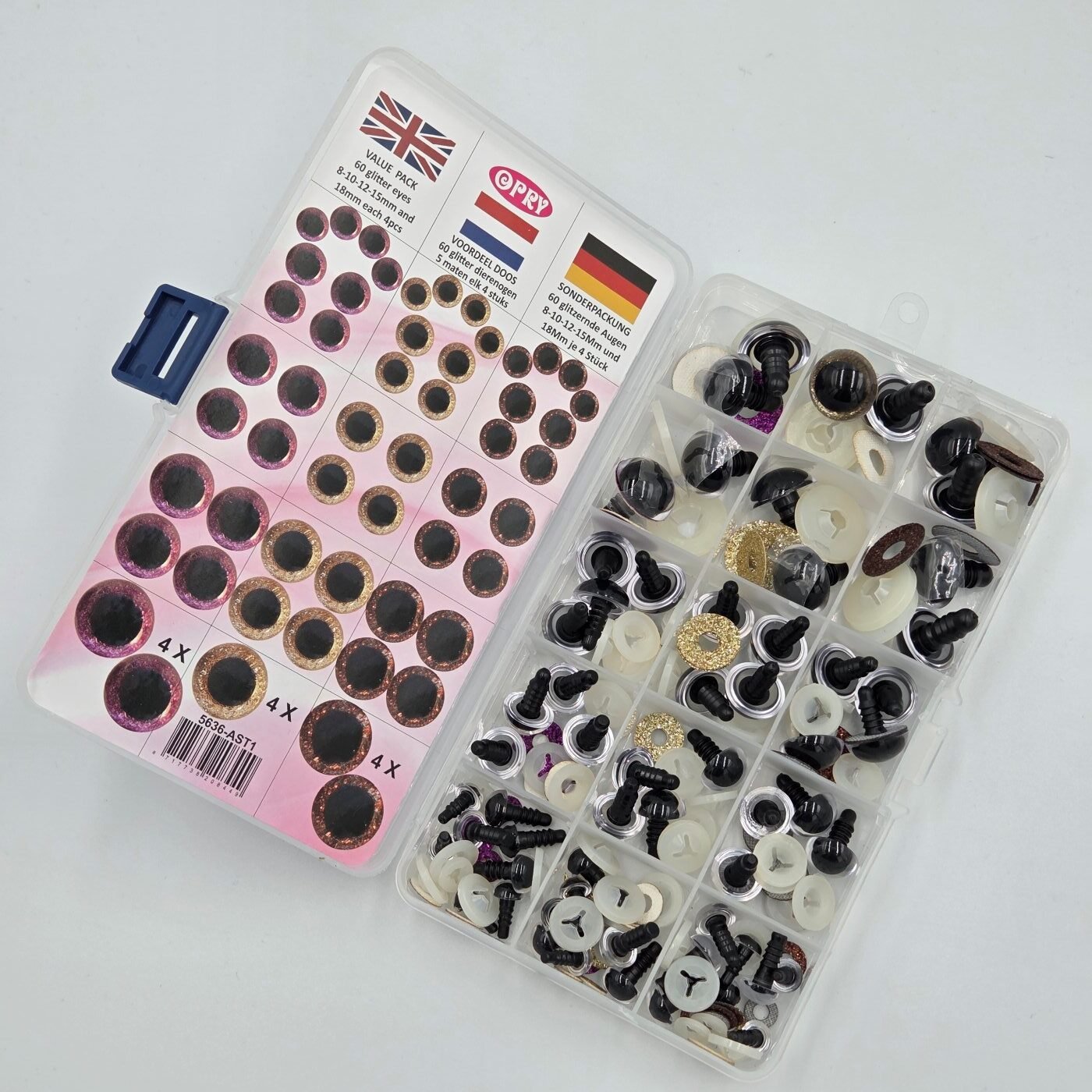 Opry spindinčių saugių akių rinkinys žaislams AST3 (8-18 mm), 60 vnt.