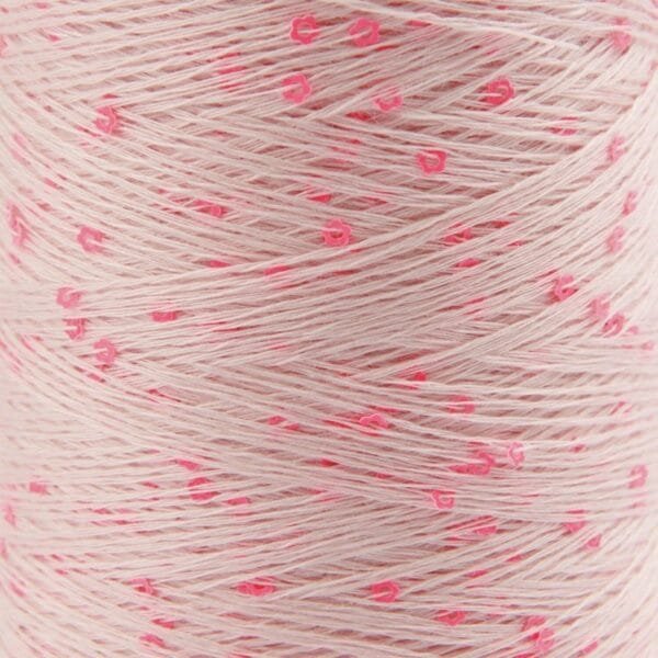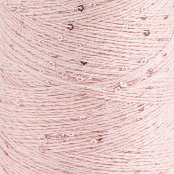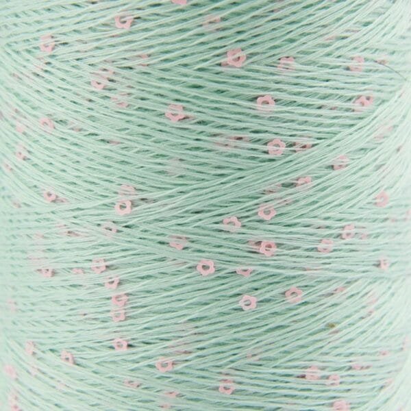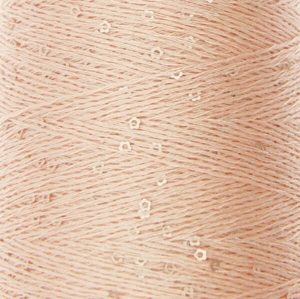 Pagrindinis siūlas pagamintas iš tvauraus ir švelnaus liocelio, pasižyminčio subtiliu šilkiniu žvilgesiu. Į jį kruopščiai įkomponuoti mažyčiai gėlių formos blizgučiai, kurie harmoningai atkartoja siūlo spalvą, todėl galutinis vaizdas yra ne rėksmingas, o itin subtilus ir elegantiškas.