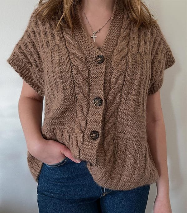 - Nuostabi tekstūra: Siūlas susuktas iš 4 gijų, todėl mezginio paviršius atrodo lygus, o raštai (tiek pynės, tiek lygus mezgimas) išlieka ryškūs ir išraiškingi.