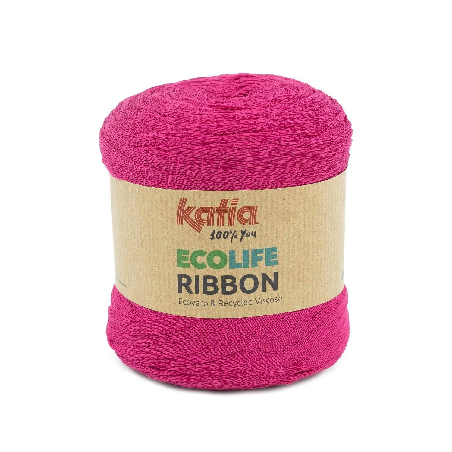 Atraskite Katia ECOLIFE Ribbon – ekologišką alternatyvą jūsų aksesuarų ir namų dekoro idėjoms. Šis juostinis viskozės siūlas, lengvesnis nei tradicinis ”T-shirt ” tipo siūlas yra unikalus stiliaus ir tvarumo derinys. Jį sudaro 80% ECOVERO – GRS sertifikuota viskozė, gaunama iš tvarių ir kontroliuojamų šaltinių, bei 20% perdirbtos viskozės.