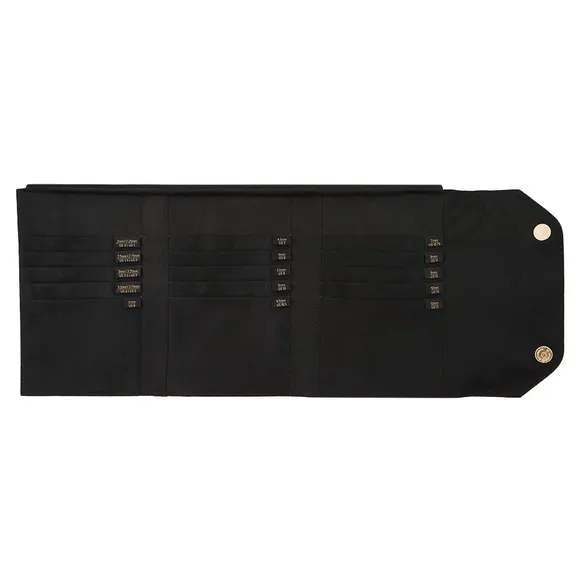 KnitPro Coal virbalų su valu dėklas – juodas, talpus ir patogus dėklas, kuriame tilps visi jūsų virbalai su valais – net iki 25 porų!