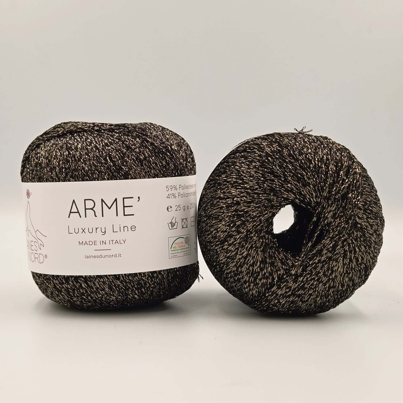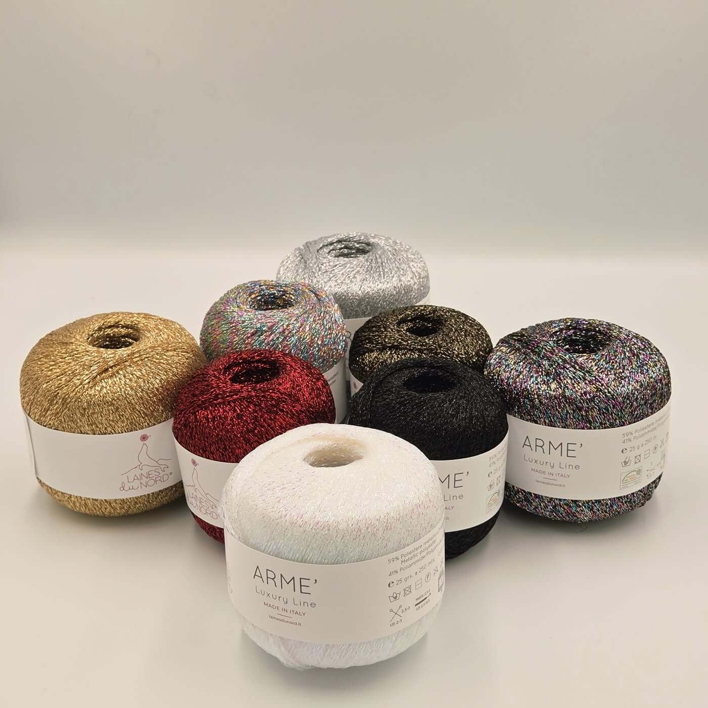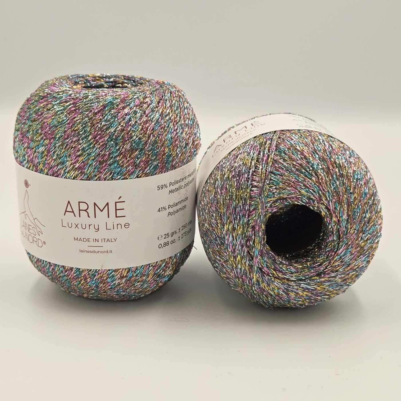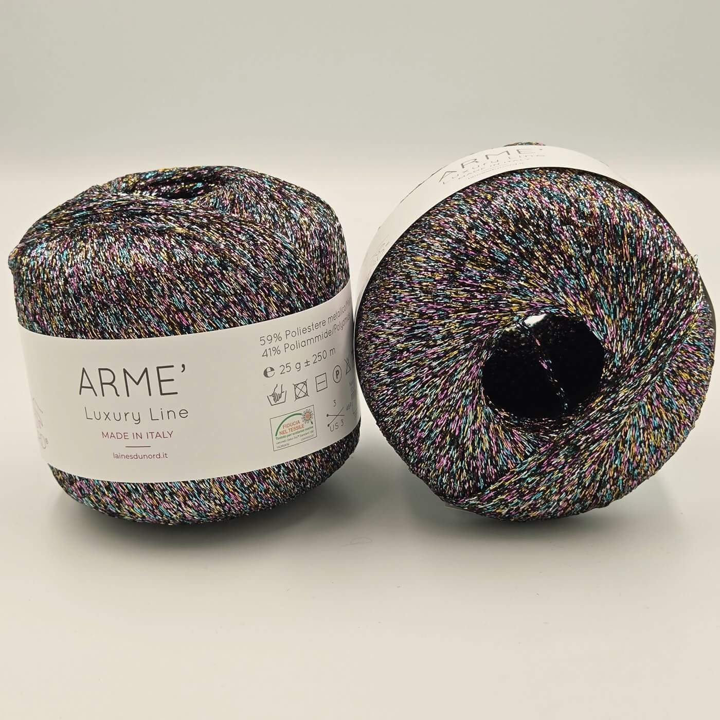 Laines Du Nord ARME – tai išskirtinio dizaino, labai plonas ir ryškiai blizgantis siūlas, sukurtas tam, kad suteiktų kūriniams prabangos, švytėjimo ir originalaus stiliaus. Šie siūlai puikiai tinka tiek mezgimui, tiek nėrimui, o jų unikalus metalinis efektas padeda lengvai išryškinti detales, suteikti įdomių akcentų ir vizualinio gilumo bet kokiam projektui.