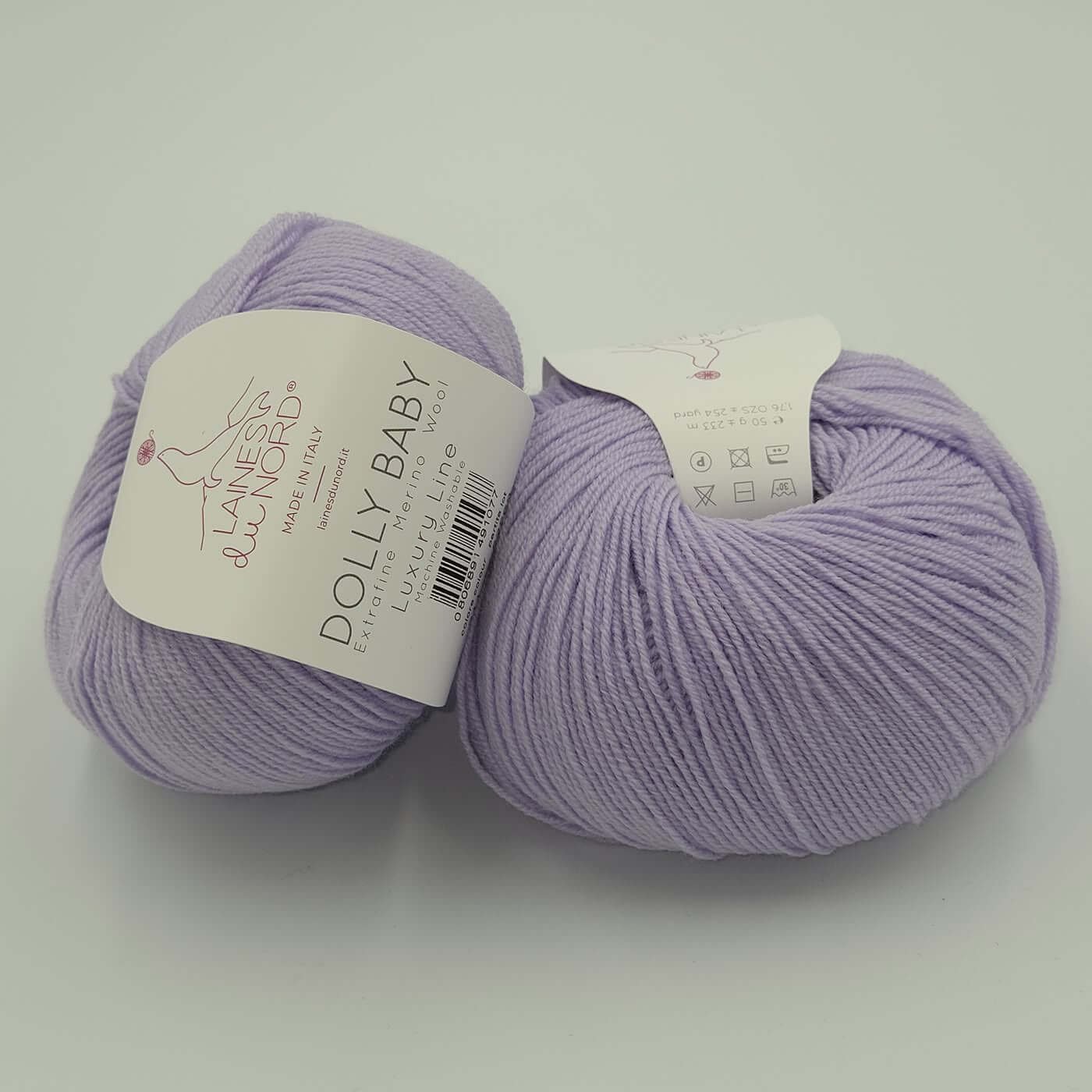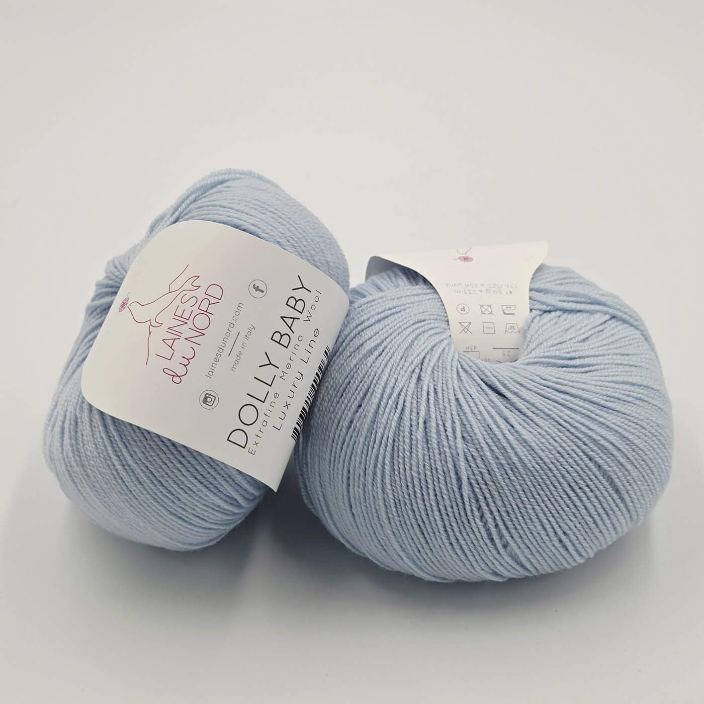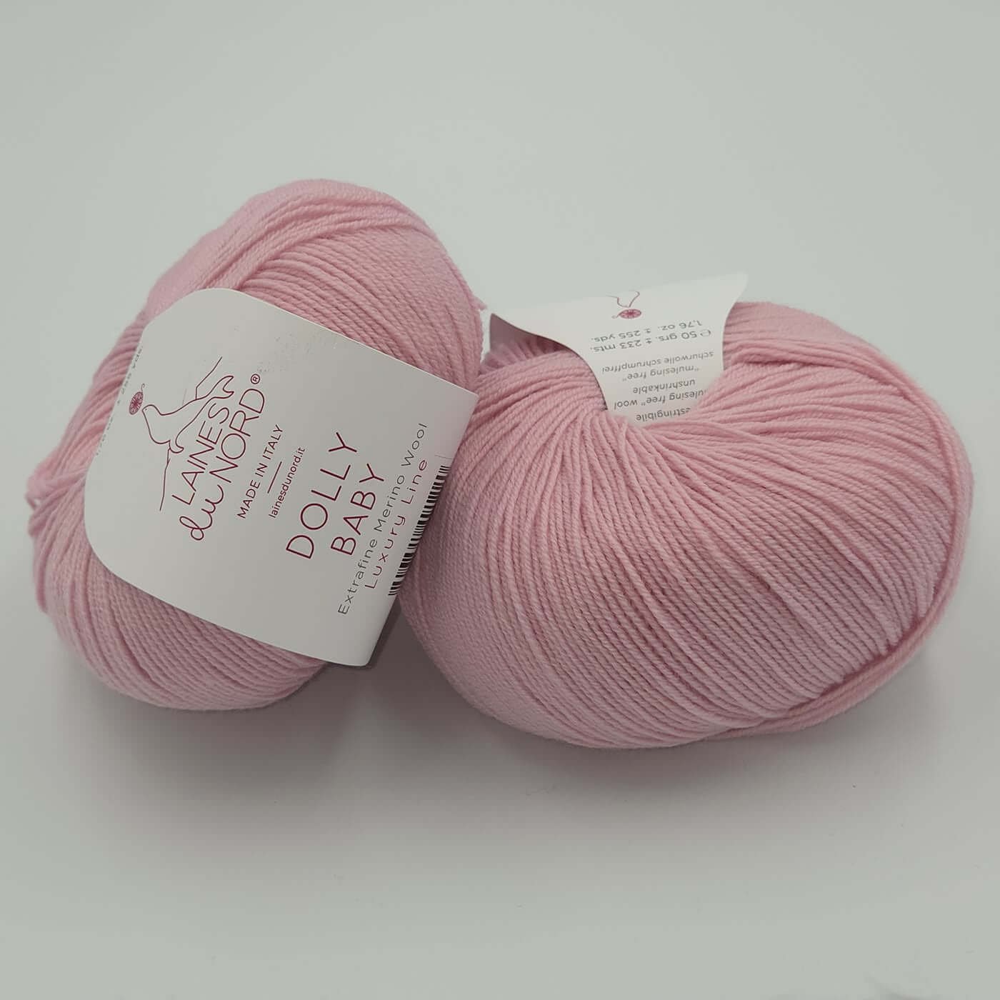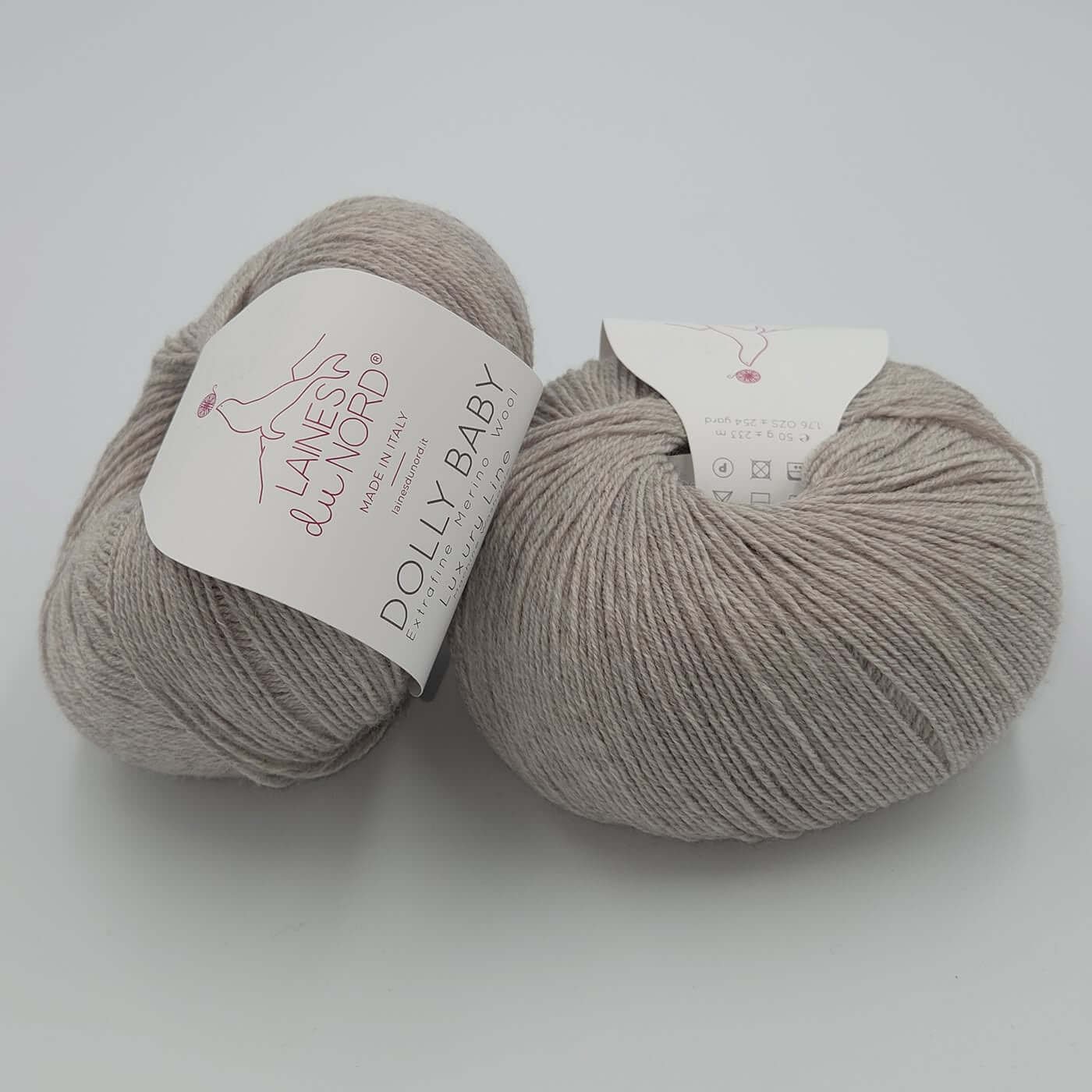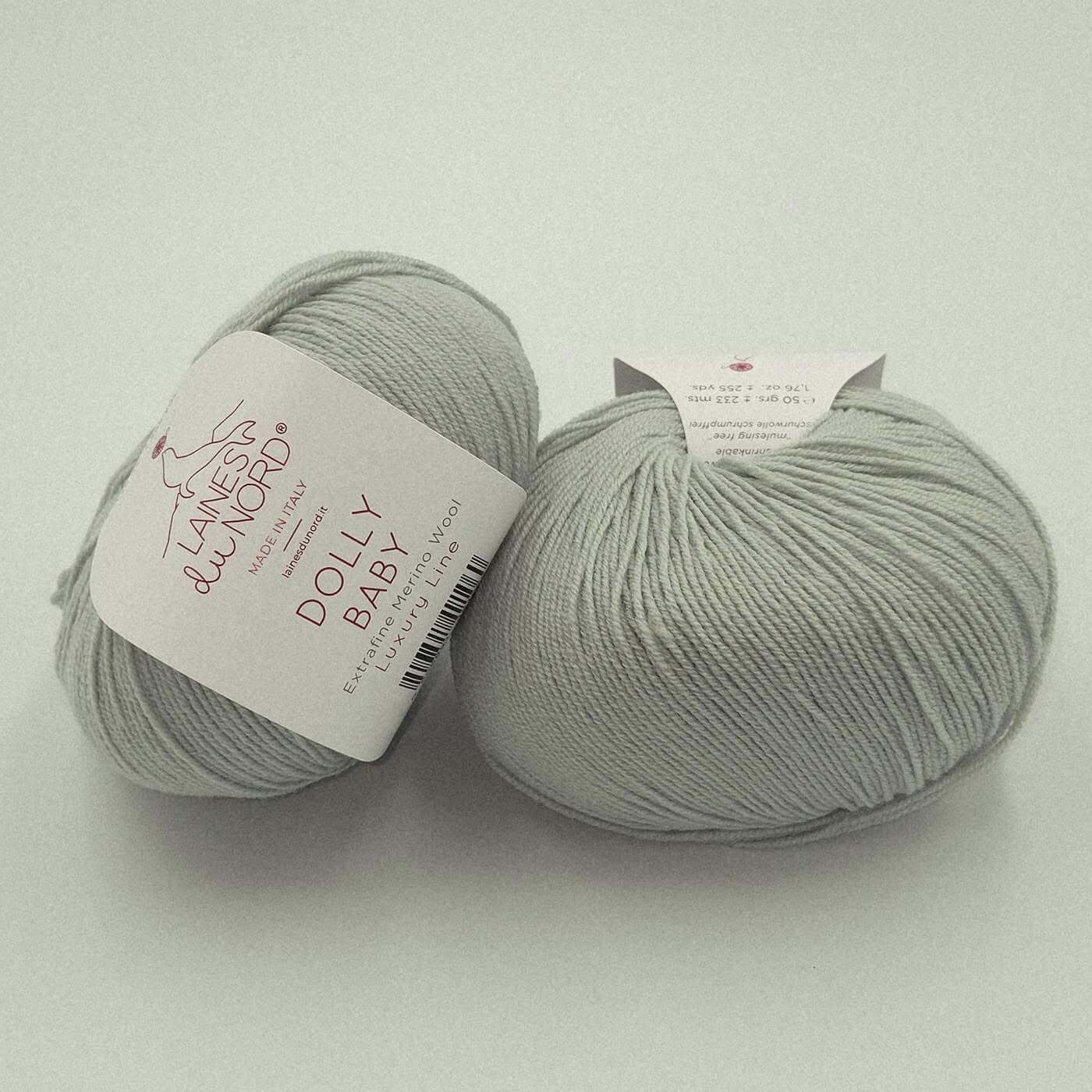 Laines Du Nord DOLLY BABY – tai aukštos kokybės, itin plonas 100% extrafine merino vilnos siūlas, skirtas lengviems, elegantiškiems ir preciziškiems mezginimas. Dėl smulkaus pluošto ir tolygios struktūros šis siūlas suteikia mezginiams išskirtinį švelnumą, lengvumą ir estetišką, tvarkingą vaizdą.