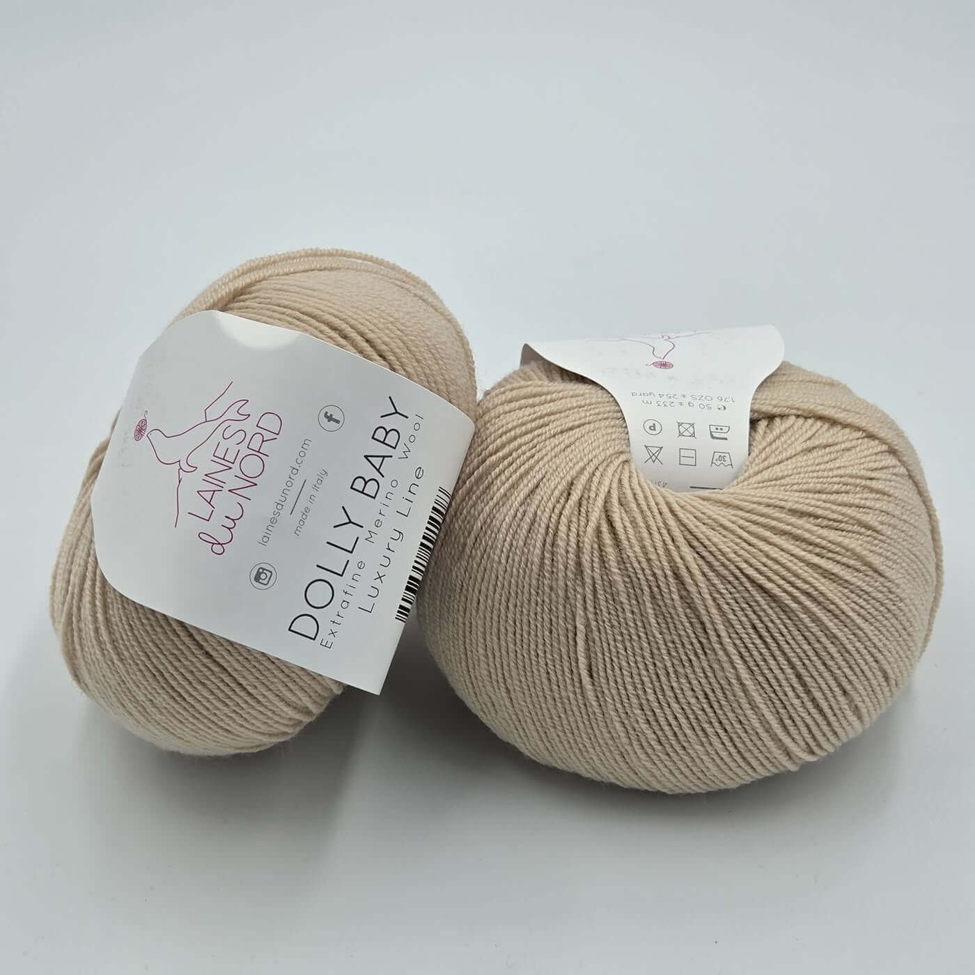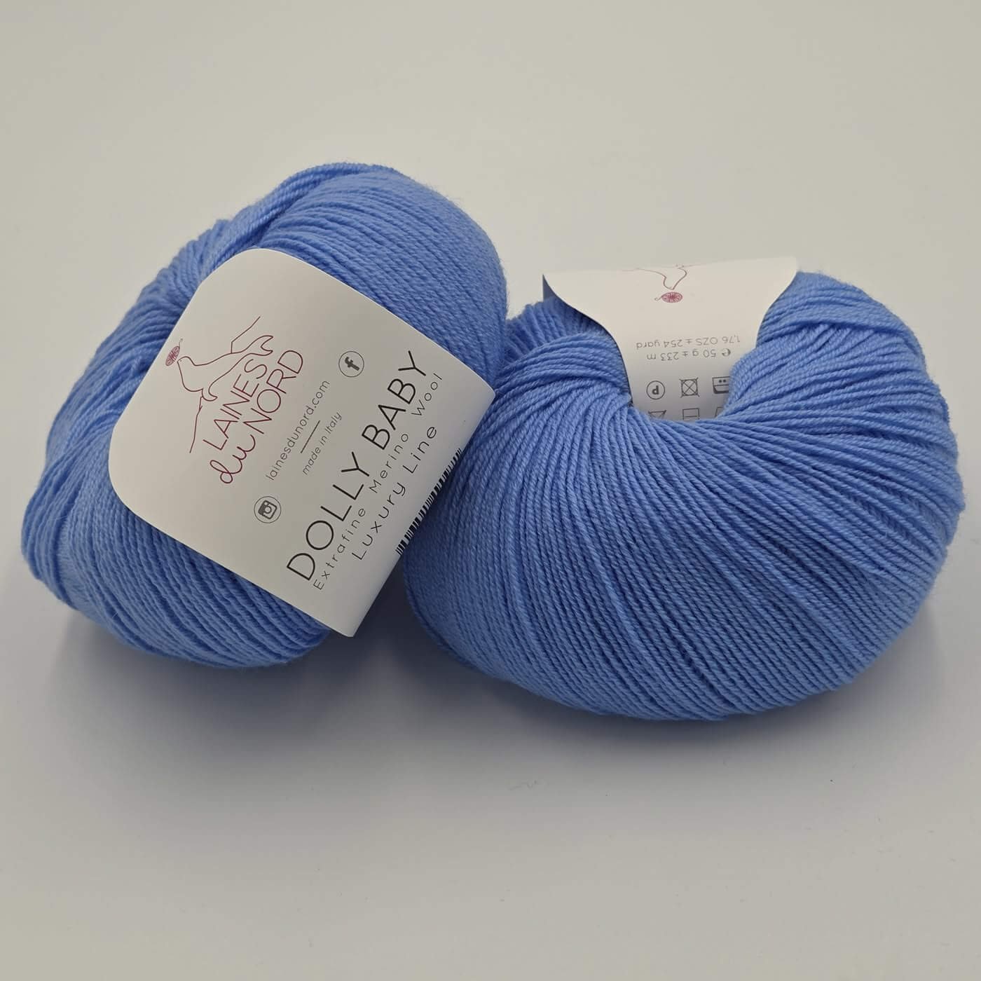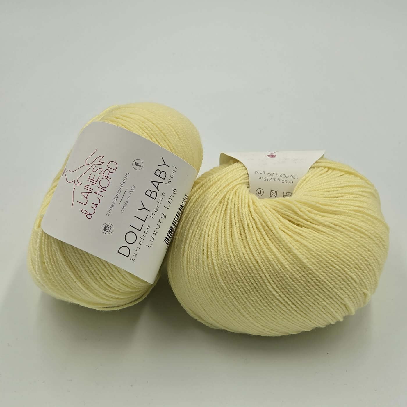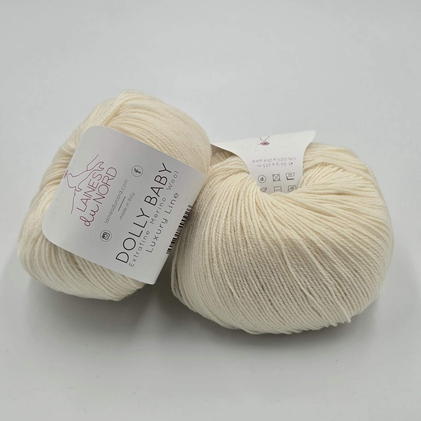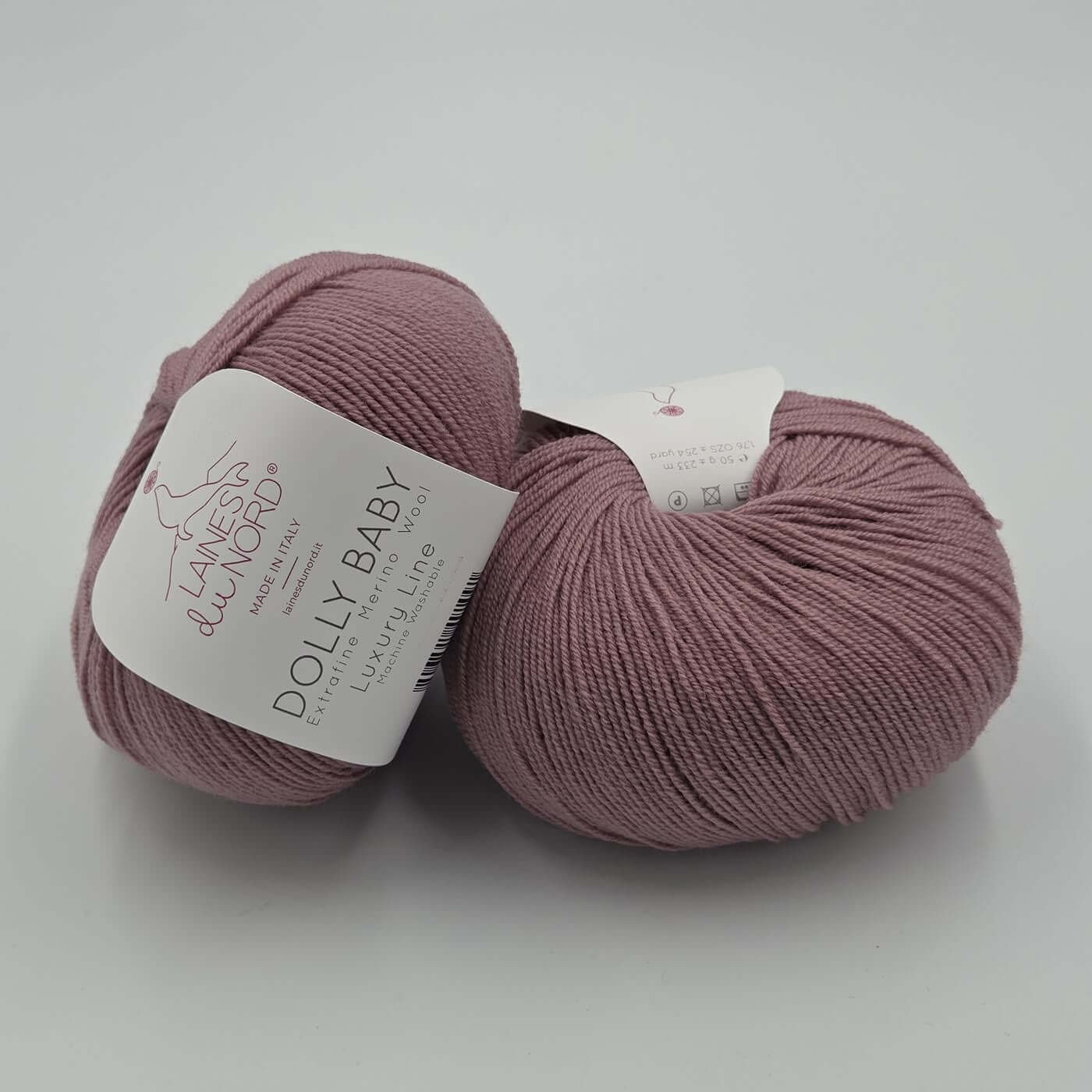 Laines Du Nord DOLLY BABY – tai aukštos kokybės, itin plonas 100% extrafine merino vilnos siūlas, skirtas lengviems, elegantiškiems ir preciziškiems mezginimas. Dėl smulkaus pluošto ir tolygios struktūros šis siūlas suteikia mezginiams išskirtinį švelnumą, lengvumą ir estetišką, tvarkingą vaizdą.