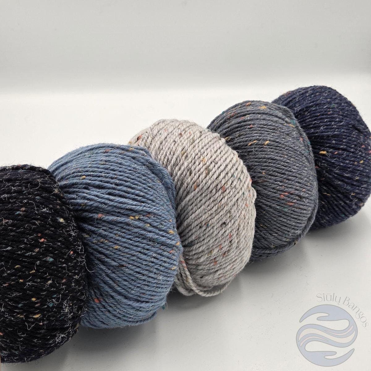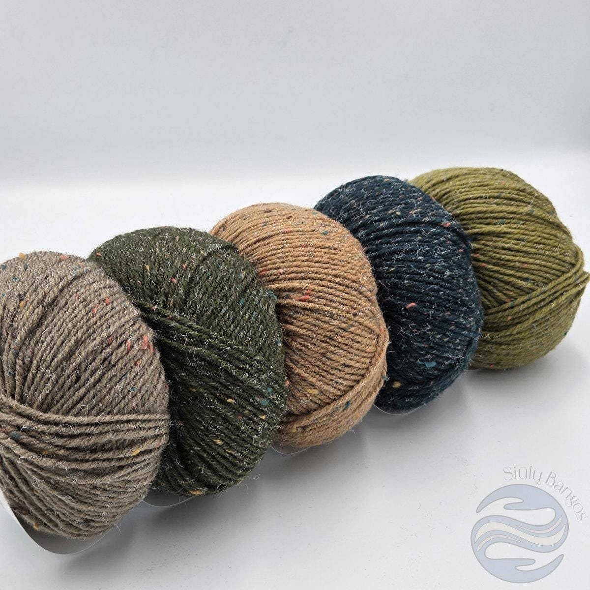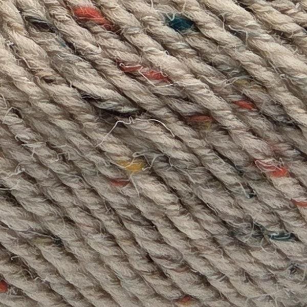 Šie mezgimo siūlai pasižymi išskirtine tvidiška tekstūra – lyg subtiliai „paberti“ spalvotais taškeliais ir smulkiais plaušeliais, kurie suteikia mezginiams gylio, charakterio ir vizualinio žaismingumo. Dėl šios struktūros net ir patys paprasčiausi raštai įgauna išskirtinumo, atrodo gyvesni, įdomesni ir rafinuotesni.
