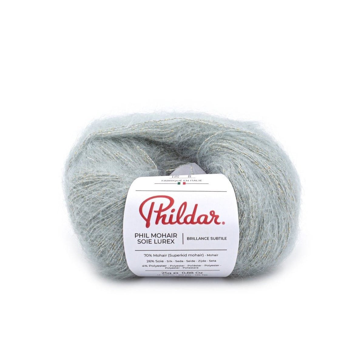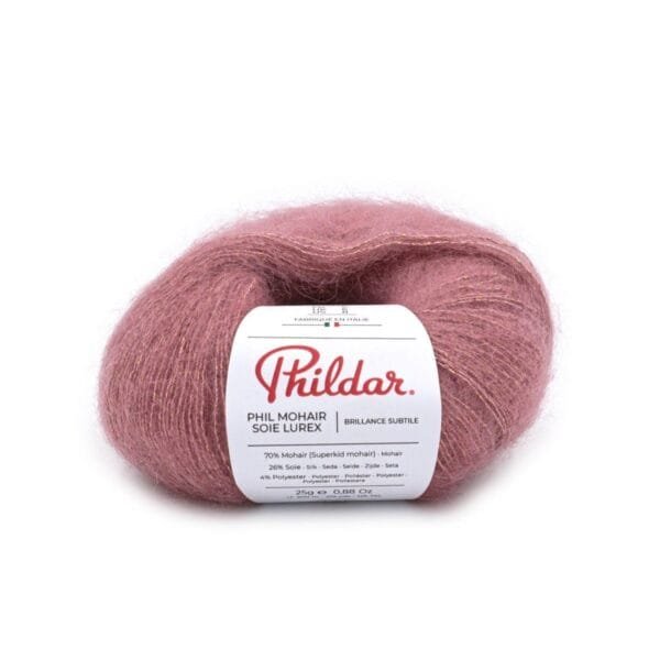 Phildar PHIL MOHAIR SOIE LUREX ( 78% kid mohera, 14% šilkas, 4% poliamidas, 4% metalizuotas poliesteris) – prabangos, lengvumo ir subtilaus spindesio derinys