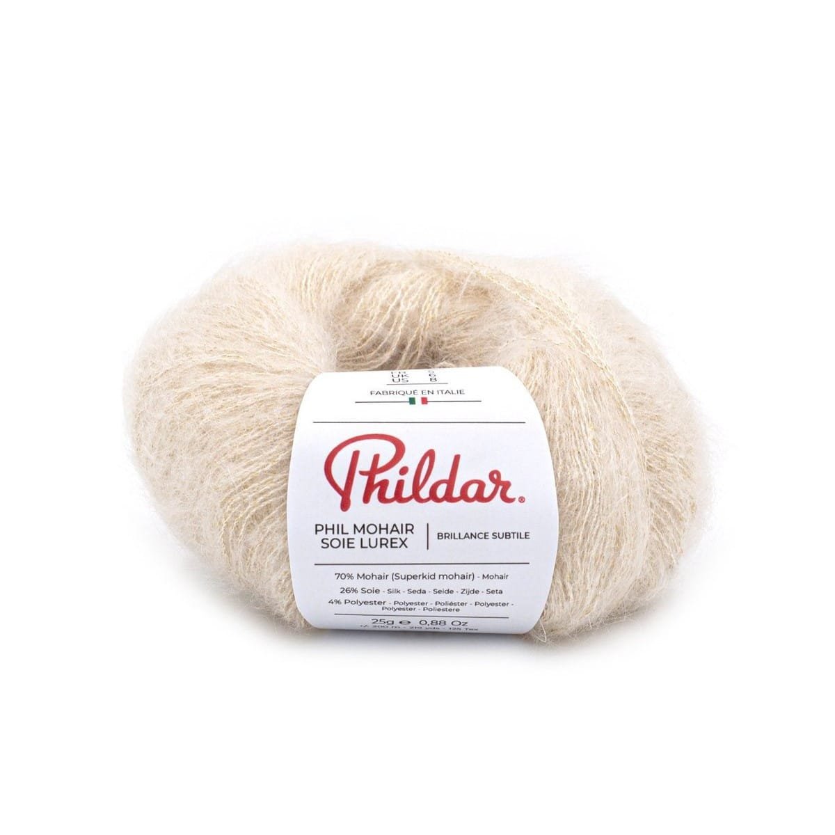 Phildar MOHAIR SOIE LUREX – tai vieni iš kilniausių ”Phildar” šeimos siūlų, skirti ypatingiems, ”voratinklio” lengvumo mezginiams. Šiame derinyje susitinka trys prabangūs komponentai: aukščiausios kokybės mohera, natūralus šilkas ir diskretiškas liureksas, sukuriantys magišką švytėjimą.