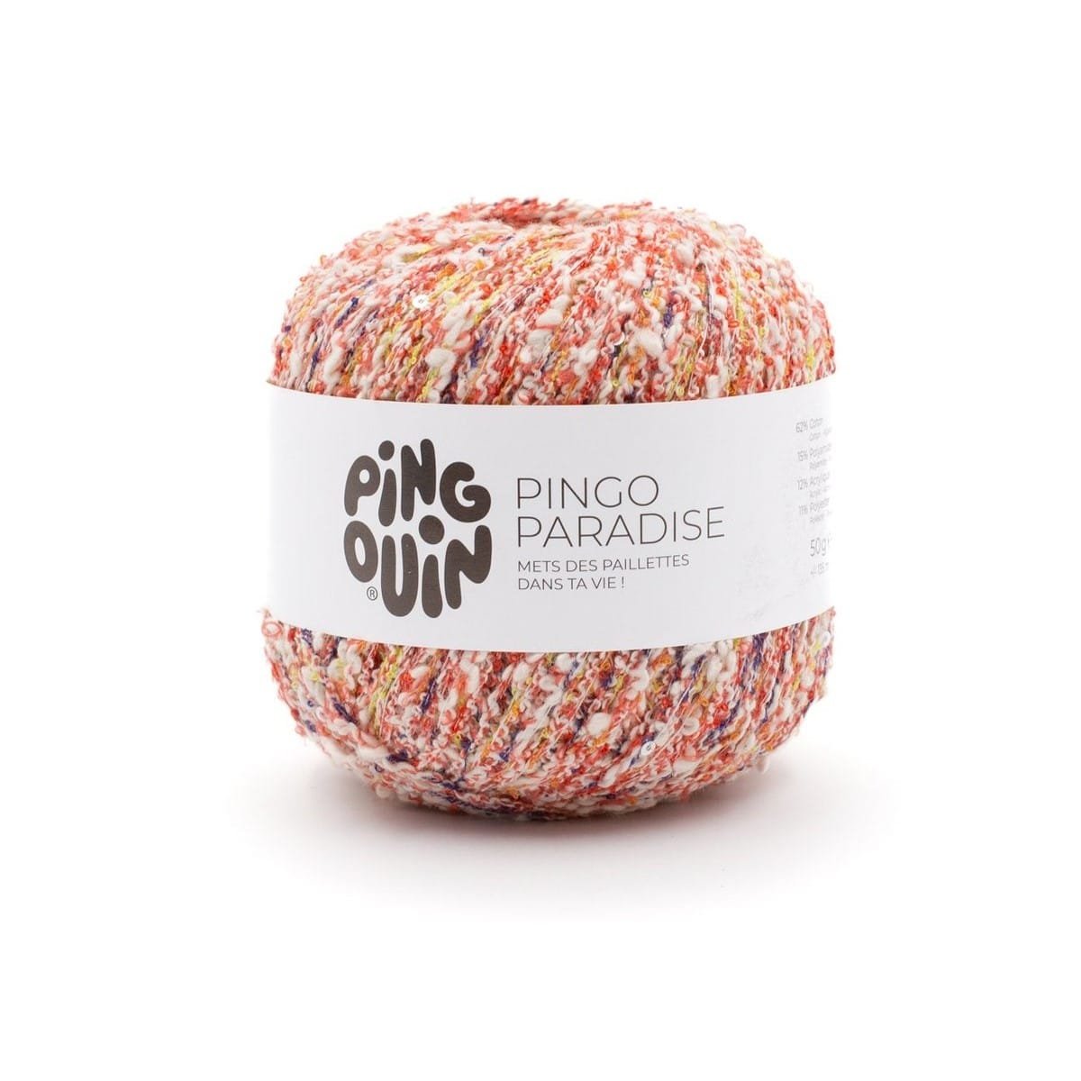 Phildar PINGO PARADISE – tai optimaliai subalansuoti siūlai, skirti tiems, kurie ieško natūralumo ir ilgaamžiškumo derinio. Didžioji dalis medvilnės (62 %) užtikrina mezginio ”kvėpavimą” ir minkštumą, o poliamido, akrilo ir poliesterio priedai suteikia siūlui elastingumo, neleidžia gaminiui išsitampyti ir palengvina jo priežiūrą.